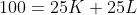 Example: If a firm has a total budget of $100 and the price of capital and labour is $25 respectively. The budget line can be written as: